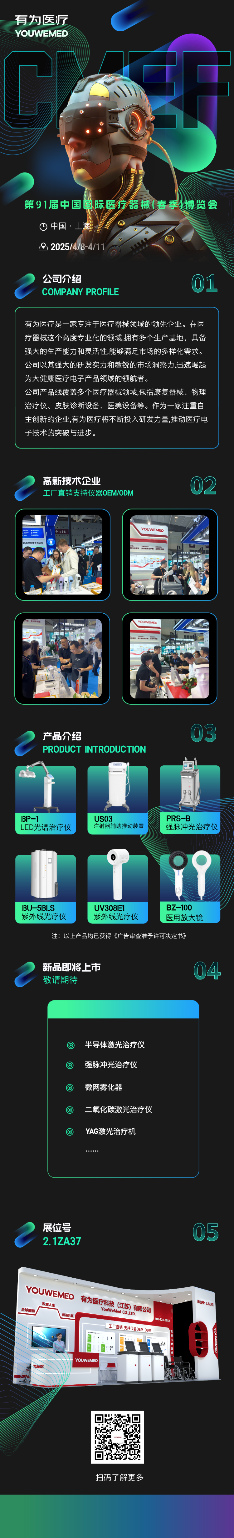 CMEF秋季展將于2025年9月26日-29日在廣州·中國(guó)進(jìn)出口商品交易會(huì)展館舉行。有為醫(yī)療YOUWEMED期待在CMEF秋季展上與您再次相見,共同探索醫(yī)療健康領(lǐng)域的創(chuàng)新解決方案和商業(yè)機(jī)會(huì)。我們將帶來(lái)更多前沿產(chǎn)品和解決方案,與行業(yè)同仁一起推動(dòng)醫(yī)療健康產(chǎn)業(yè)的創(chuàng)新發(fā)展。
